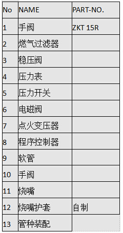 燃?xì)馊肟趬毫nlet Presure: Max 150mbar 單只燒嘴最大功率:3KW/只